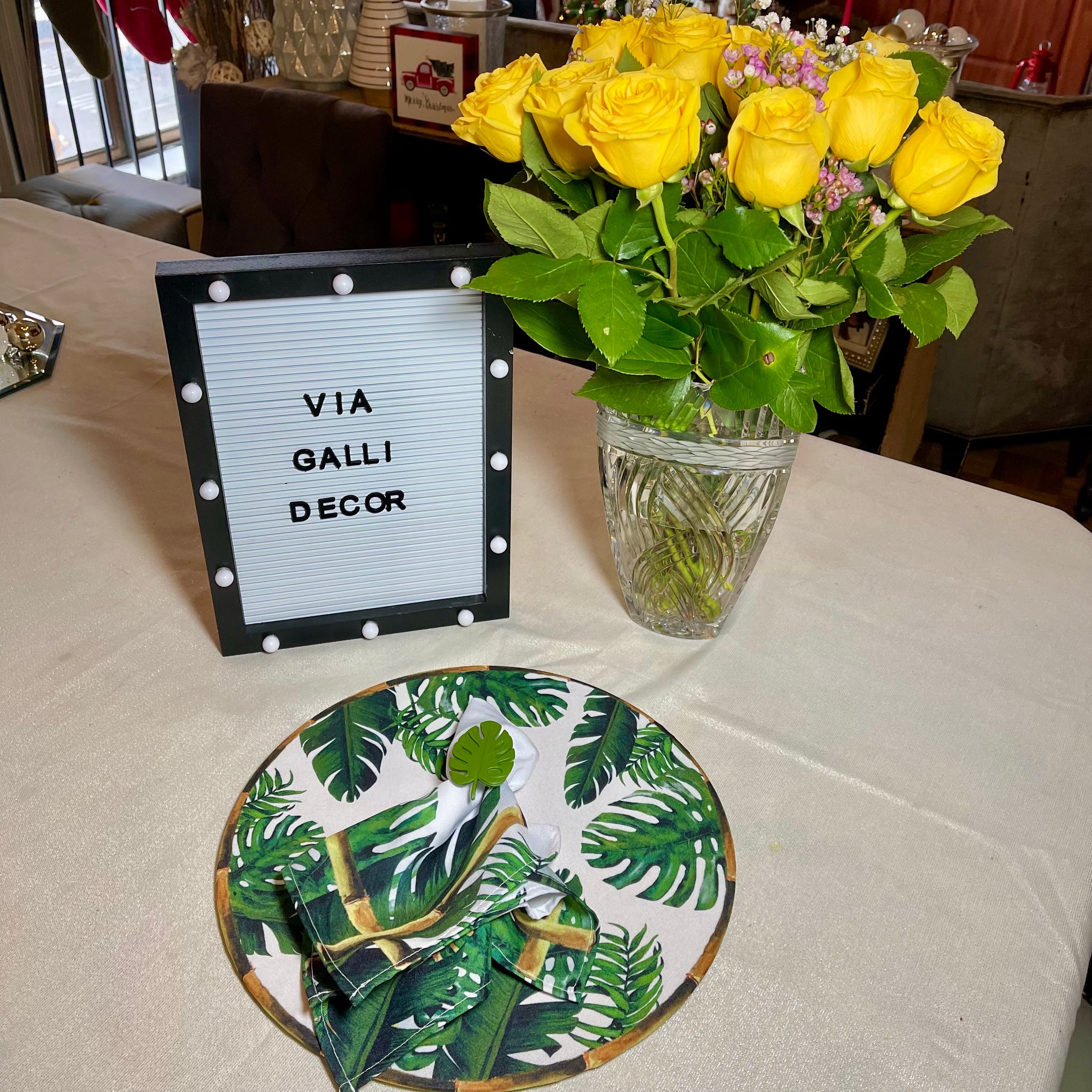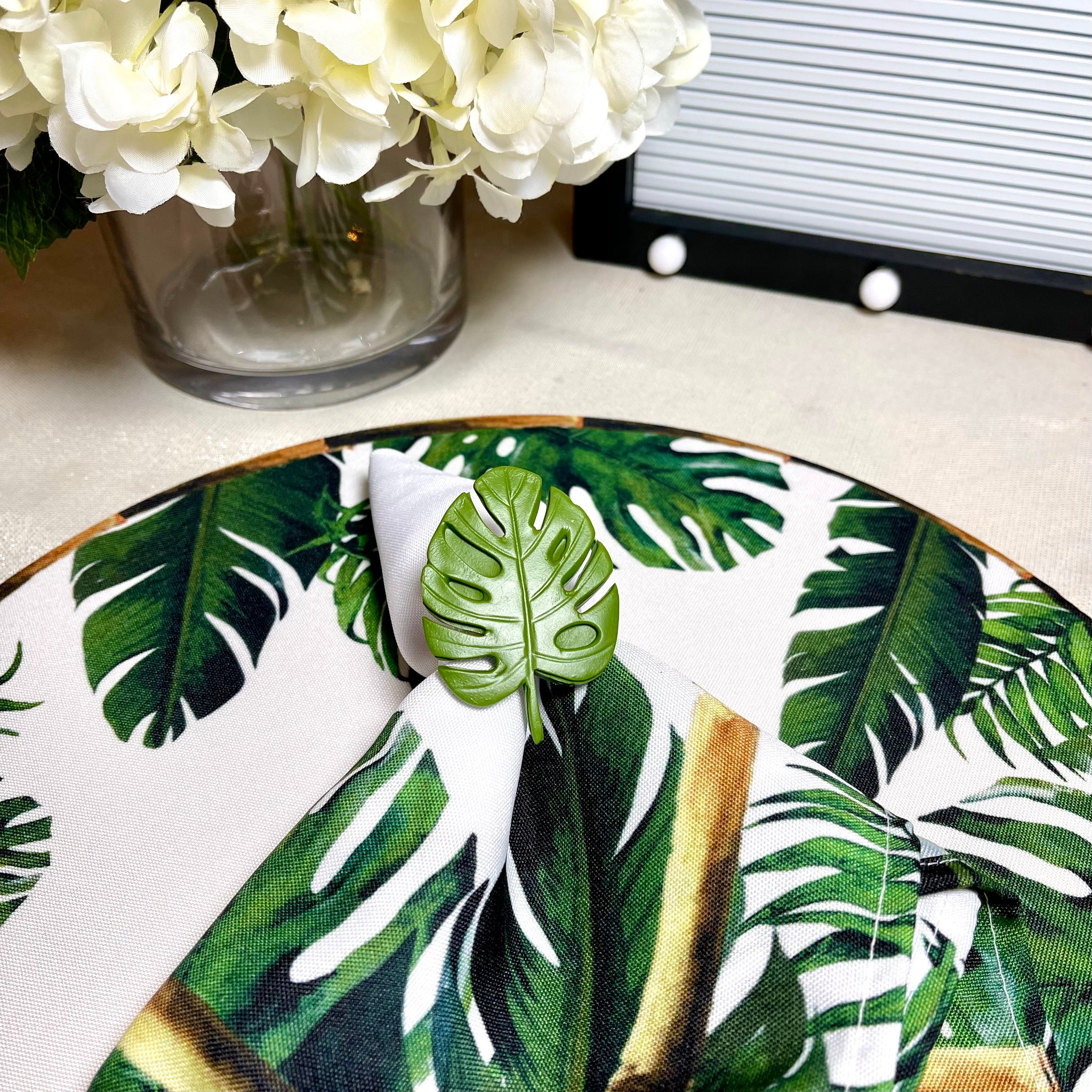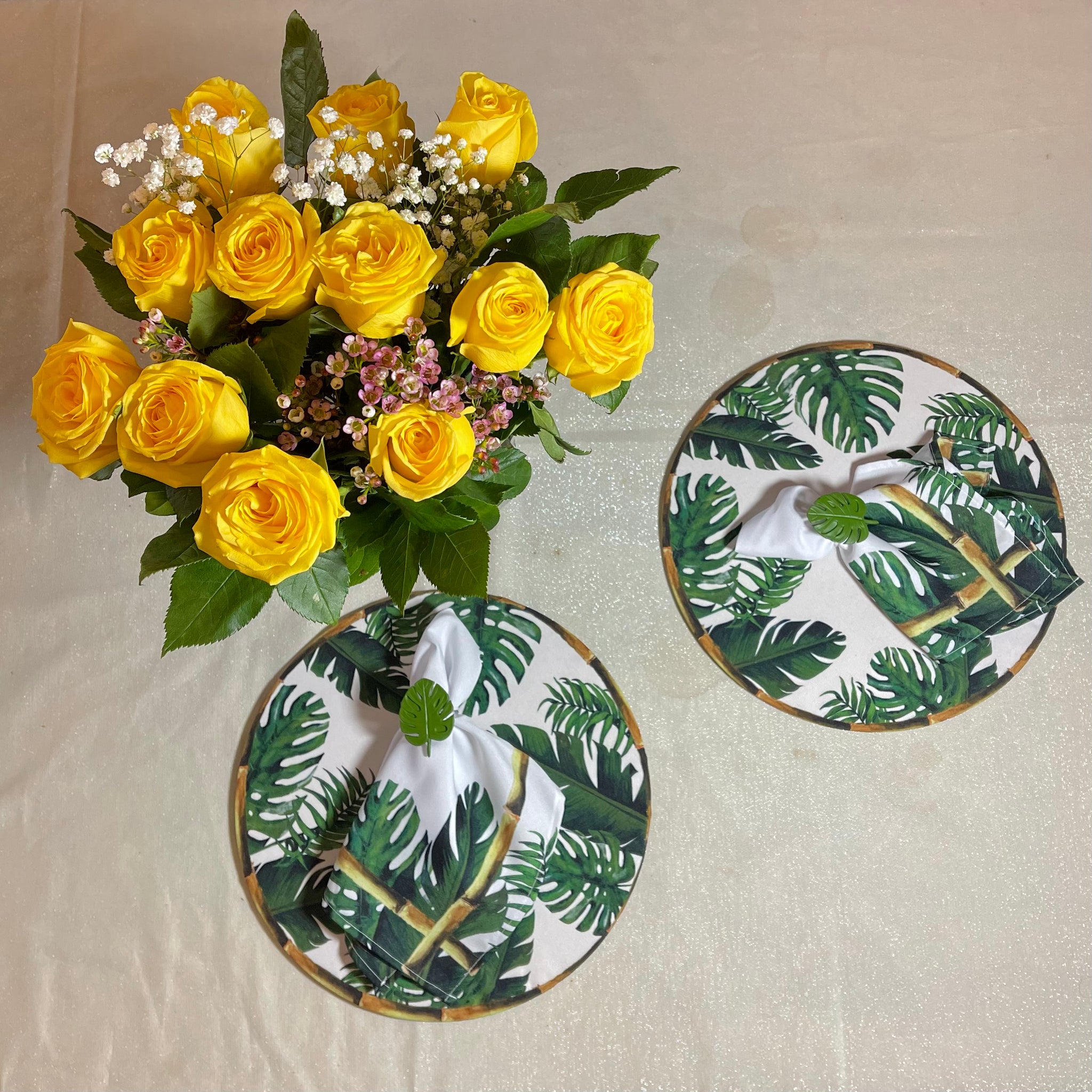 Set contains: one sousplat cover, one napkin, and one napkin ring as per in the picture.