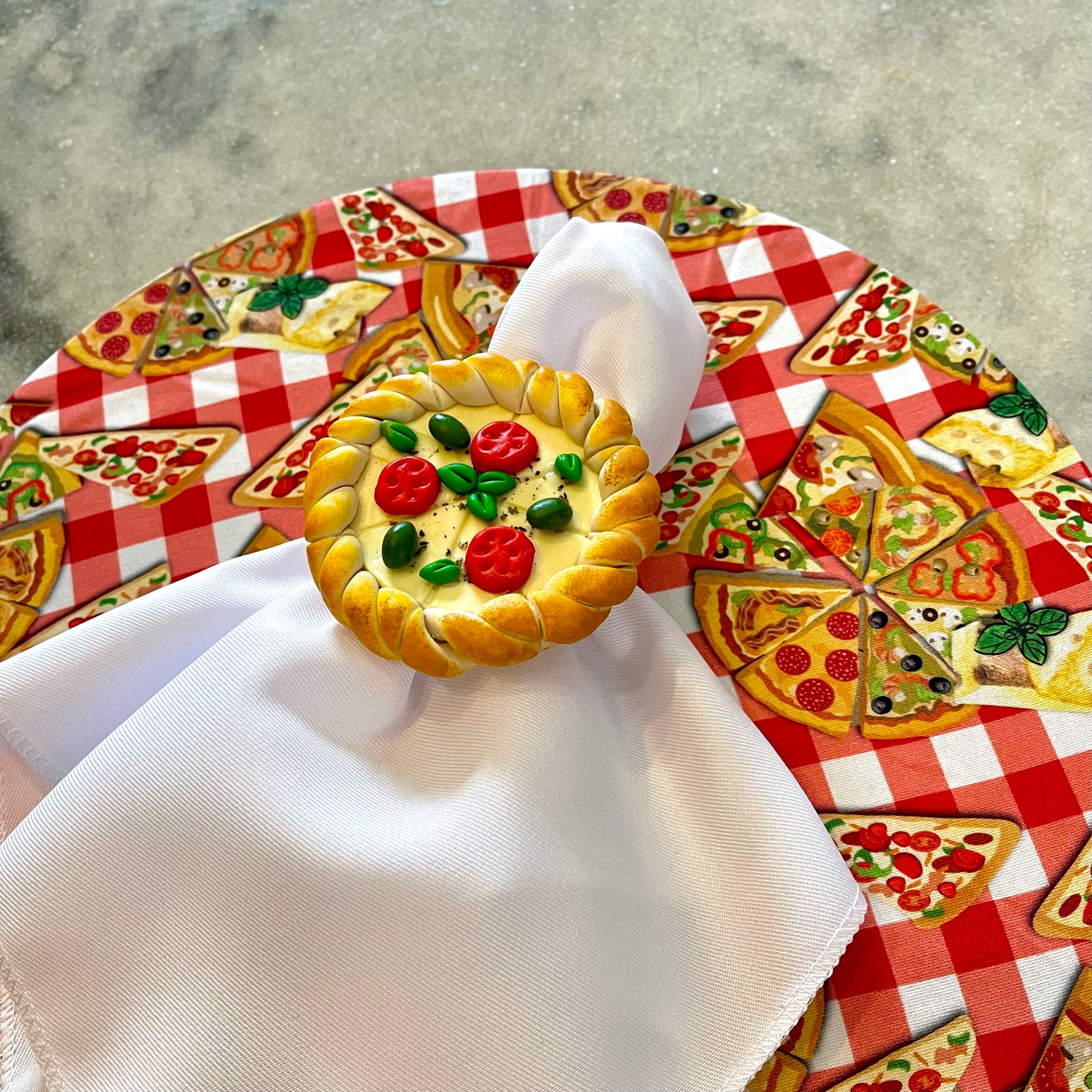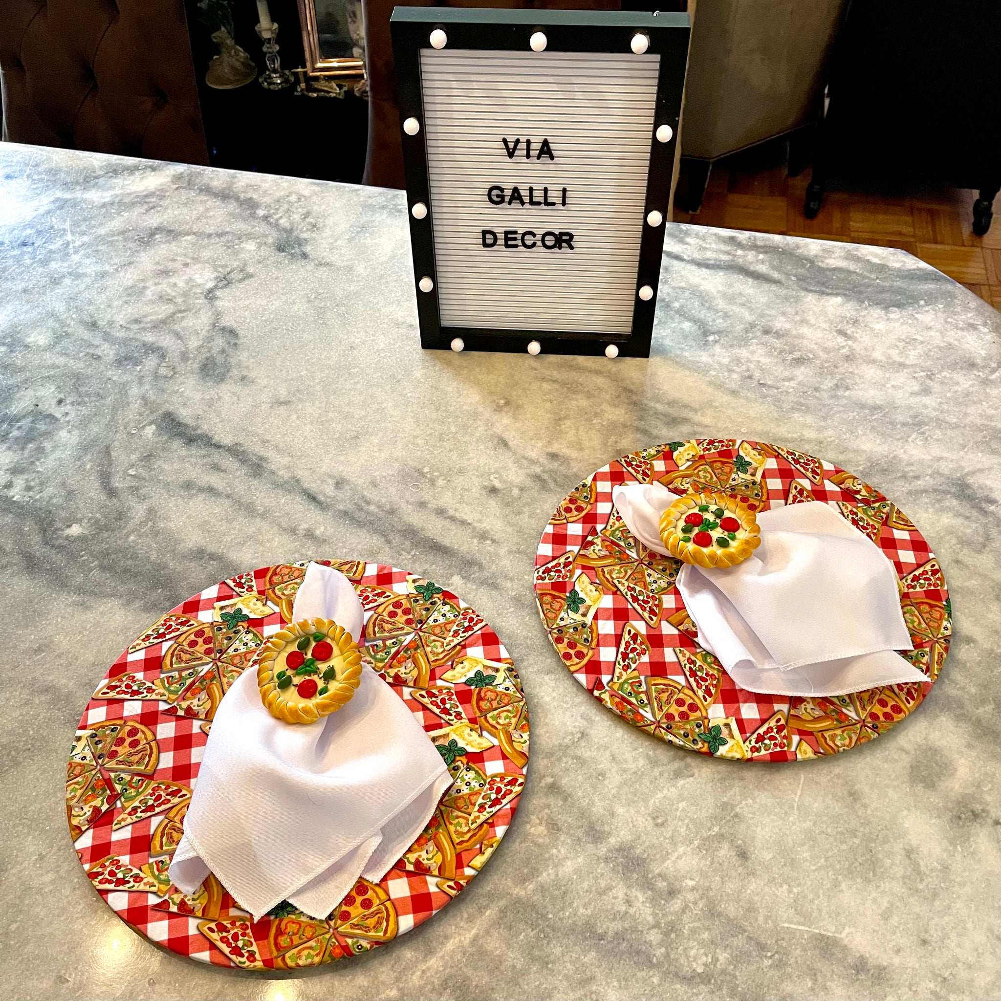 Set contains: one sousplat cover, one napkin, and one napkin ring as per in the picture.