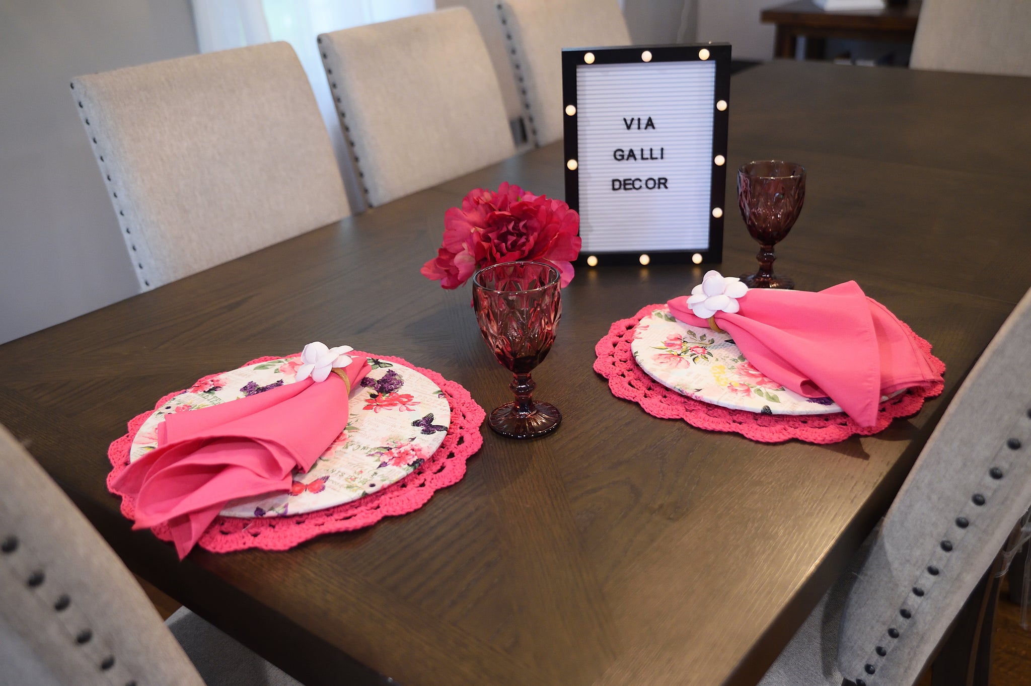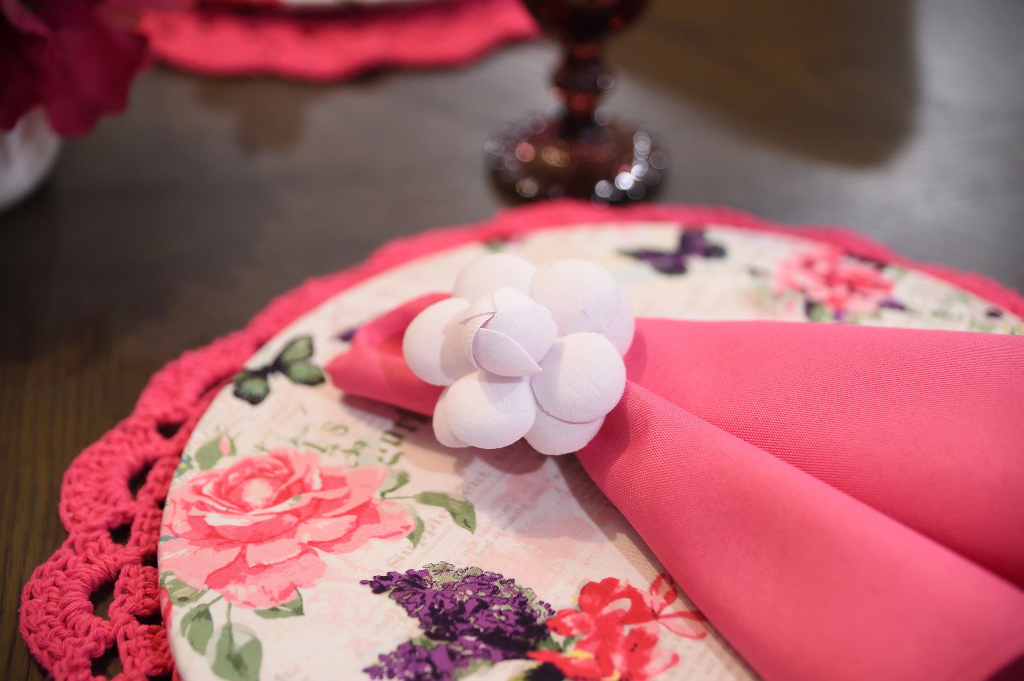 Set contains: one sousplat cover, one napkin, and one napkin ring as per in the picture.